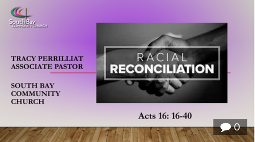 Finally, she noted that there is a racial divide happening within the big C church yet, the Bible is clear on God’s position on this issue. Pastor Tracy shared that reconciliation with God and reconciliation with one another are inseparable in God’s saving work”. This is most clear in Ephesians 2:11-22 where it shows that “God’s program of reconciliation is not simply vertical (reconciling believers, the world, and all things to himself) but also horizontal (reconciling Jew and Gentile, circumcised and uncircumcised)”. Christ “has made the two (Jews and Gentiles) one and has destroyed the barrier, the dividing wall of hostility” (Eph. 2:14).