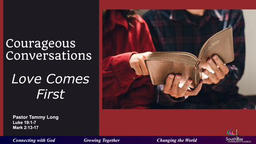 The title for this message in the Courageous Conversations Sermon Series is, “Love Comes First.” The Courageous Conversations Sermon Series will continue over the next year. God calls us to love people, including LGBTQ+; love does not mean agreement, but it does mean acceptance. God wants us to feel empathy, compassion, grace, and mercy. God directs us to open our heart to love with abandon like Jesus. We may not agree with one’s choices before God, but God’s grace applies to us all. Broken relationships cause hurt and withdrawal from the people of God where there should be acceptance, belonging, and community; this often leads to a turning away from the faith. The Big C Church (worldwide body of Christ) is at a crossroads, and to many it is imploding and splitting over the issue of human sexuality. Let us look to Jesus, as the Living Word, in action. How did Jesus respond to those regarded as sinners? The grace and truth in love trumps all.