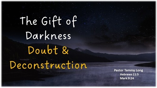 In this message, we close our sermon series on the Gift of Darkness, by exploring the darkness of doubt and deconstructing our faith. Doubt is honestly asking tough questions. In deconstruction of faith, we are examining and evaluating what we believe. This can lead to reevaluating and dismantling faith. So far in this sermon series, we have considered the darkness of what appears for us to be God’s absence, the darkness of illness and physical challenges that God has not healed on earth, the darkness of trauma, and the darkness of God’s silence. We saw how there are unique gifts in every season of darkness. Light and darkness are the same to God, and God does some of God’s best work in the dark. Every area of darkness we have looked at so far has been about when we feel God has turned away from us. In this message, we will explore the darkness of doubt and deconstruction when we step back and sometimes even step away from God. We may find ourselves struggling with doubt about God and God’s Word. Something may happen leading us to question what we believe. We may find ourselves in a crisis over the fear of losing our faith. Like the other seasons of darkness, God has gifts for those who go through a season of doubt or deconstruction. For example, such gifts include a deeper relationship with God and a better understanding of God’s Word.