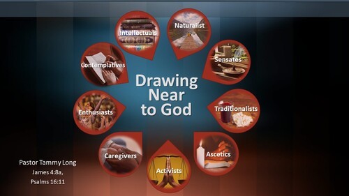 In drawing near to God, suggestions for a traditionalist are: (1) establish a scriptural rhythm reading a Psalm each morning and each night; (2) explore the richness of the Christian calendar – Advent, Christmas, Lent, Easter, Pentecost; (3) set a daily pattern for a prayer schedule; (4) establish a regular time and place to meet God each day; (5) consider symbols such as art, jewelry, stickers that will help you draw near to God.