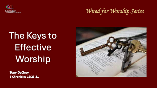 God. The focus of this message is about the keys for effective worship. Keys are usually used to gain access to something that is locked. Some of us try to break into God’s presence using short cuts without the keys. Without keys there is no legitimate access to the fullness of experiencing God’s presence. Worship is recognizing the worth of the one you worship. Let’s highlight three keys to worship that are available to us. The three keys to worship are purpose, preparation, and participation. (1) The purpose key unlocks why we worship. God is holy. God sacrificed the Son while we were sinners, and worship is our reasonable service. (2) The preparation key prepares us to hear from God in worship. We communicate with God through prayer, and we acknowledge our sins to grasp the true nature of God. (3) The participation key unlocks how we worship. We sing, praise, use music, dance, worship with the fruit of our lips, give, witness, and baptize. As God transforms us through worship, God uses us to advance the Kingdom of God.