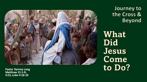 Today is Palm Sunday, and Jesus literally is at the center of it all. The cheers and also some jeers are all about Jesus. What that meant for Jesus to be at the center on that particular day would depend on who you asked, what they believed was happening, and what they were expecting to happen. Last week, we began our series, “Journey to the Cross.” Minister Tony DeGruy wrestled with the question, “Who is Jesus?” Today, we continue the Journey to the Cross series with the question, “What did Jesus come to do?” We begin to glimpse the answer as Jesus rides into Jerusalem on a donkey.
