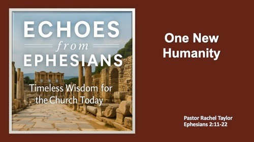 Today, we are continuing our series in the book of Ephesians, picking up in chapter 2 of the book. The title of our sermon this morning is "One New Humanity," which comes from verse 15 of chapter 2 in Ephesians, which says, "His purpose was to create in himself one new humanity out of the two, thus making peace."
