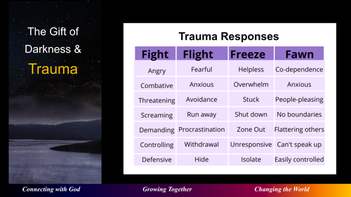 In this message, as we go to God’s Word, we will be exploring God’s gift of darkness and trauma. If you feel anxious or triggered during this message, please do deep breathing and let the very breath of God, the Holy Spirit, bring you comfort and peace.